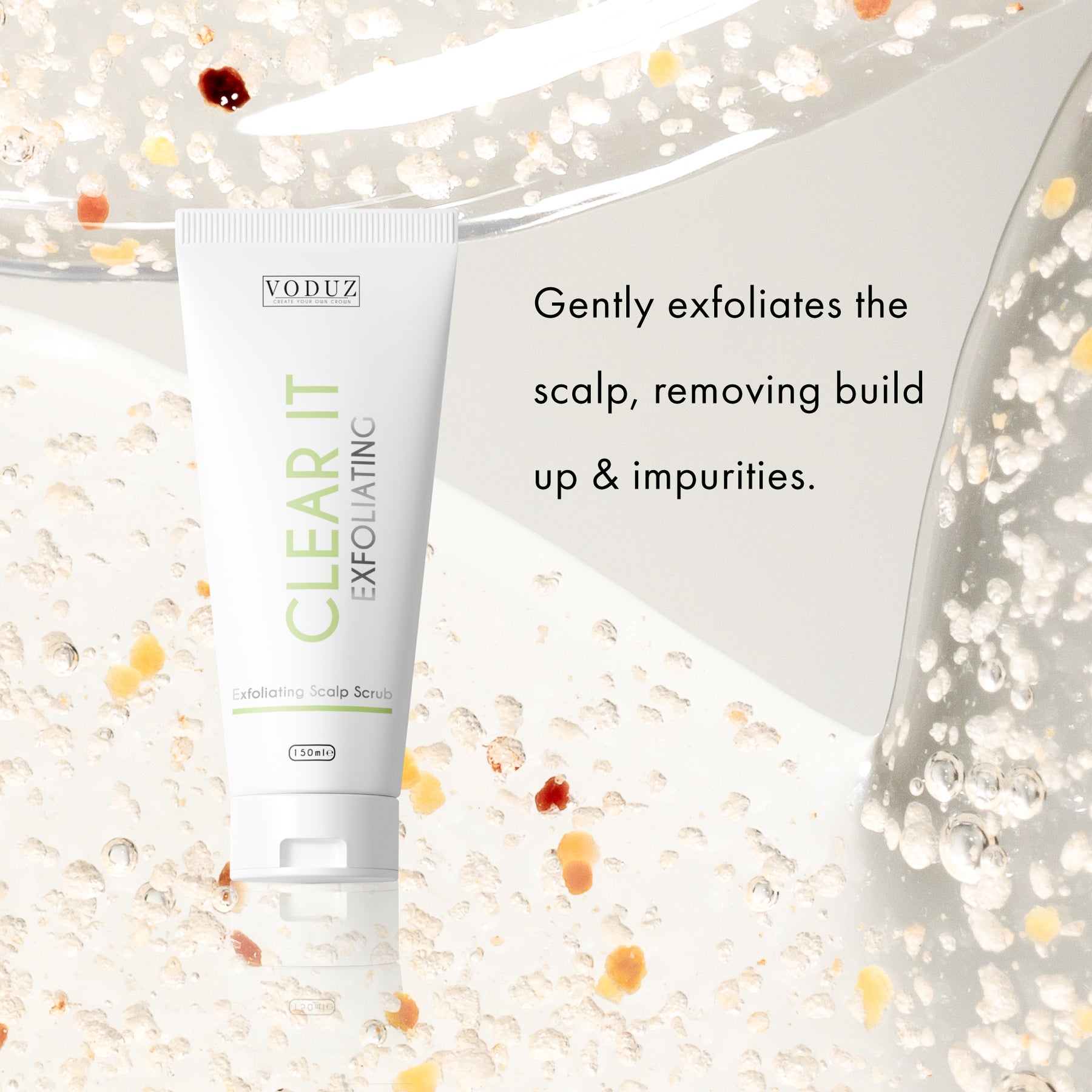 Give your scalp the deep cleanse it deserves with Voduz Clear It Exfoliating Scalp Scrub.