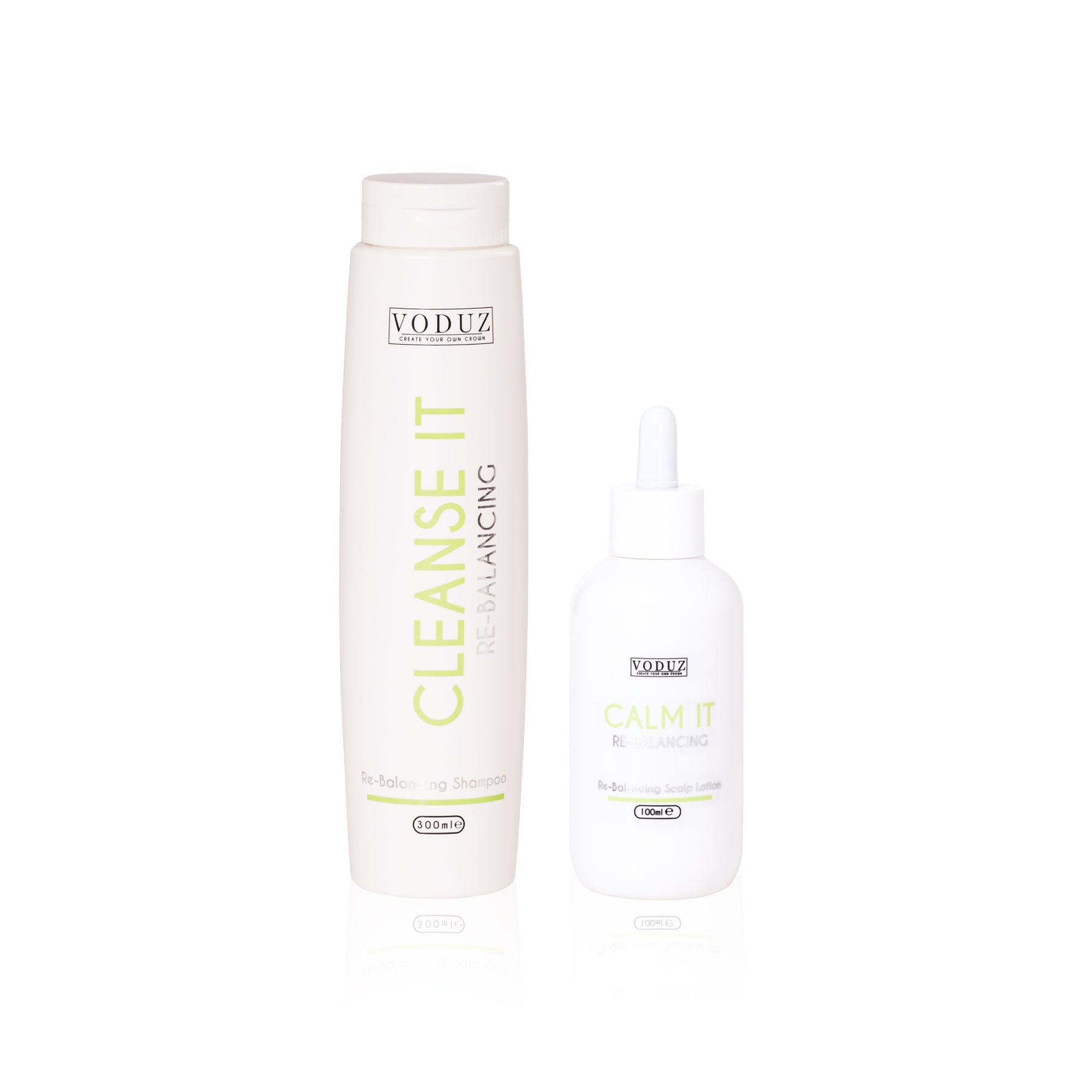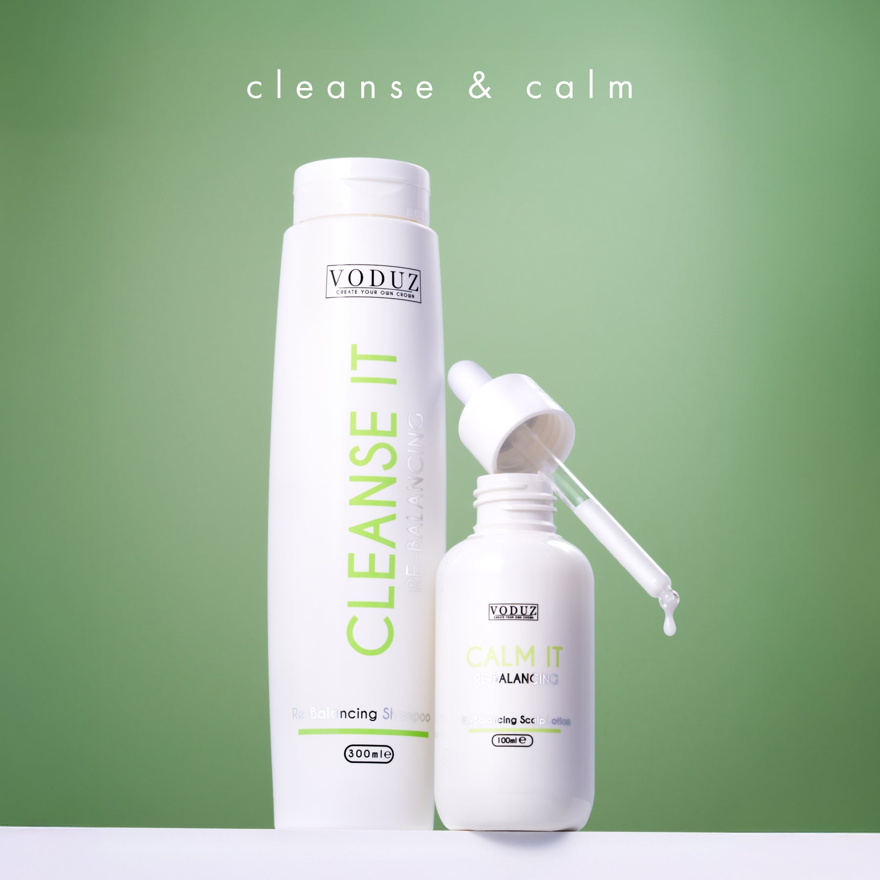 Voduz 'Cleanse It' Re-Balancing Shampoo is a gentle cleanser that tackles both oily and dry scalp issues, purifying your scalp while regulating oil production and removing dandruff. Its key ingredients ensure your scalp stays balanced and healthy.